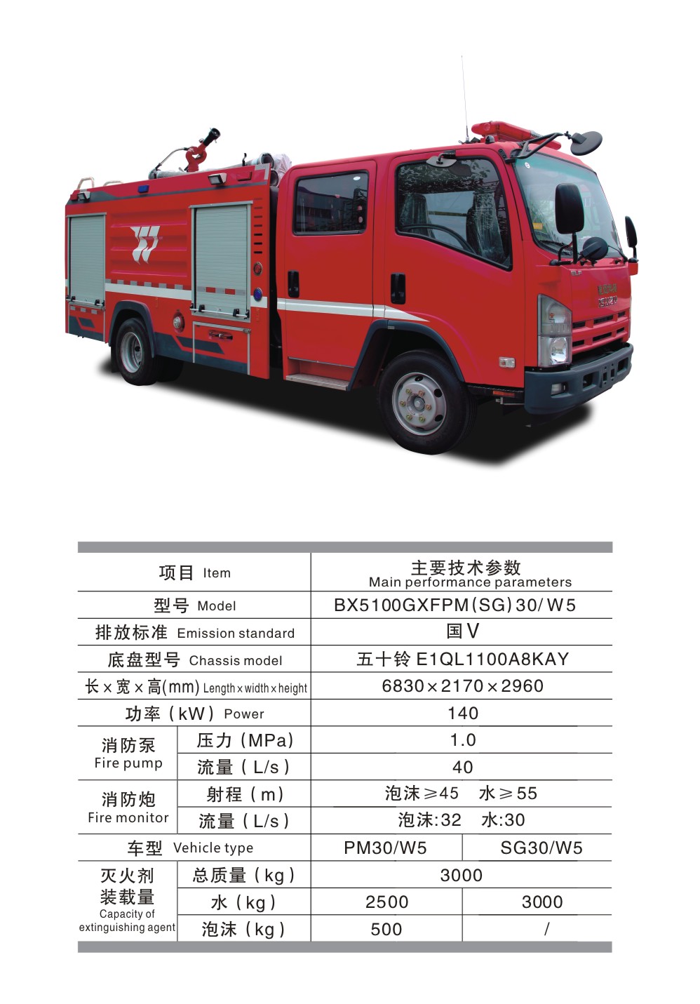 BX5100GXFPM(SG)30/W5 水罐泡沫消防車