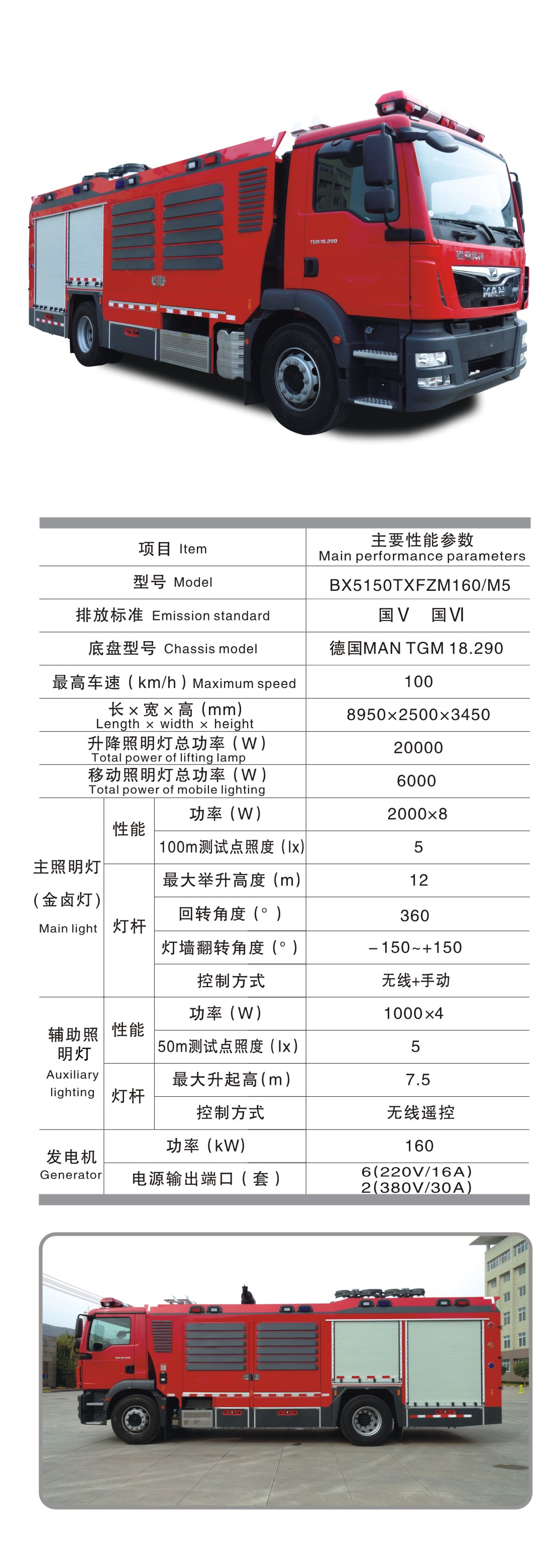 BX5150TXFZM160/M5 照明消防車