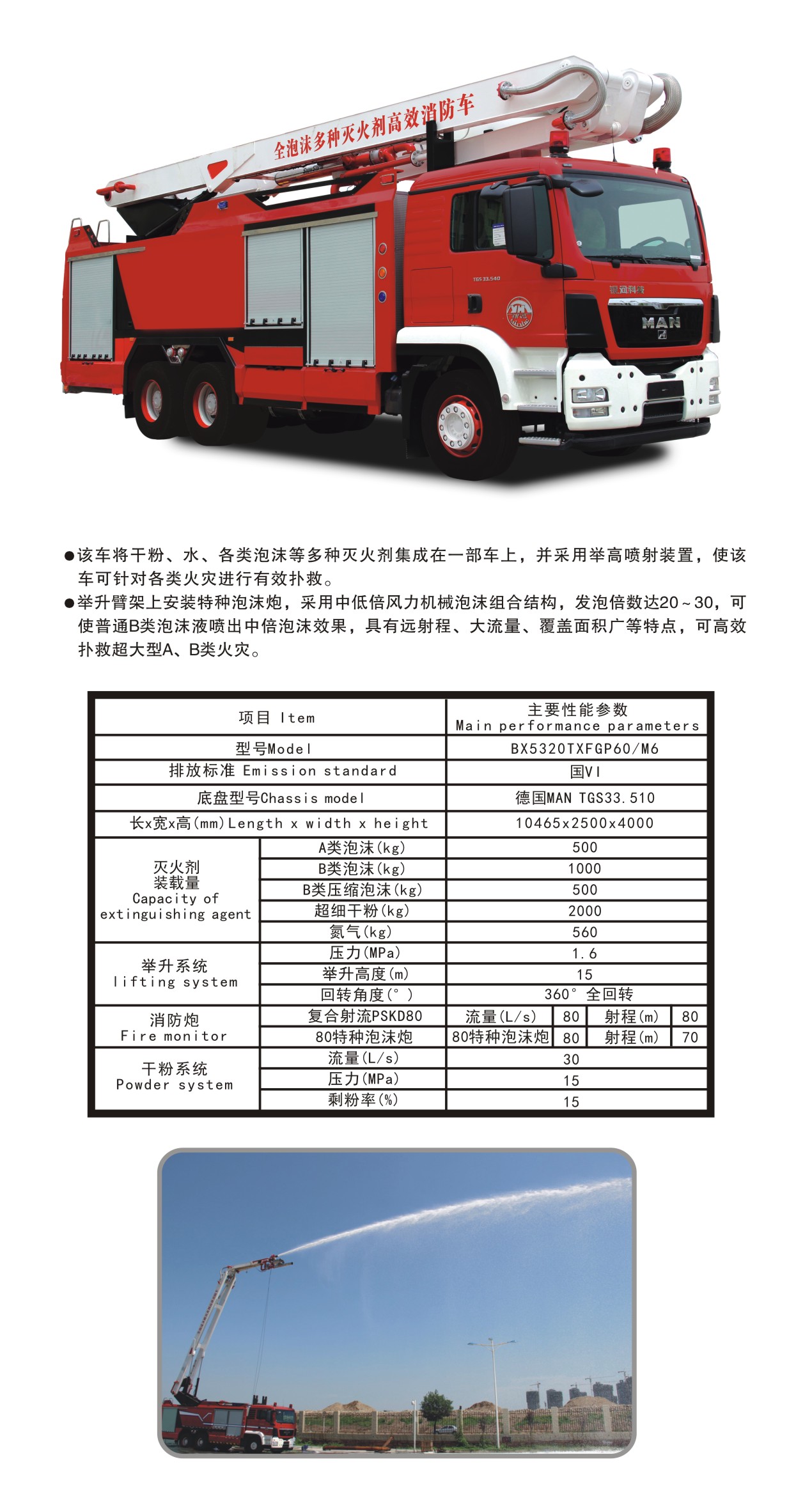 BX5320TXFGP60/M6全泡沫多種滅火劑舉高噴射消防車(chē)